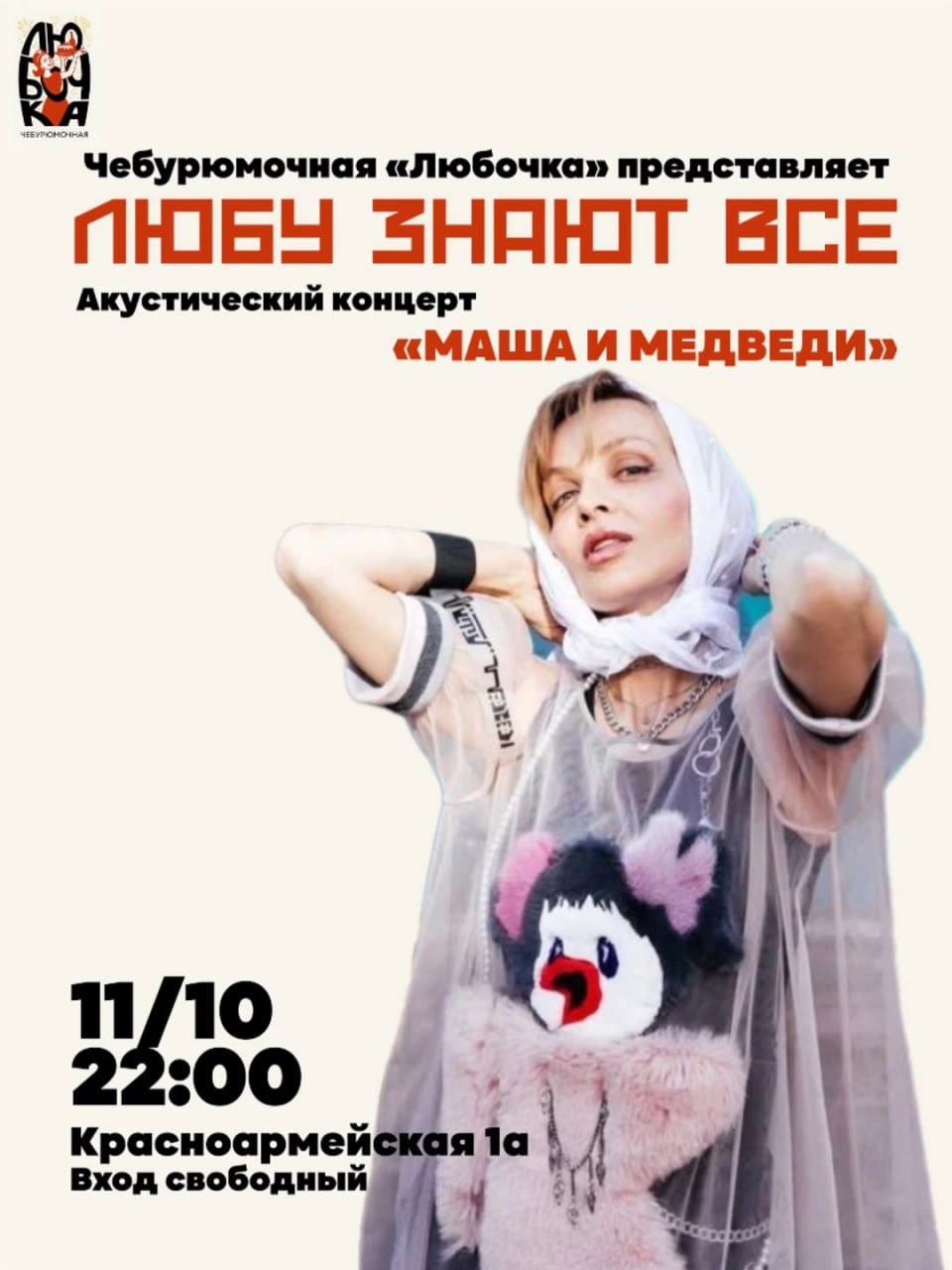 11 октября вы услышите знаменитое «Любу знают все» на акустическом концерте группы «Маша и Медведи».