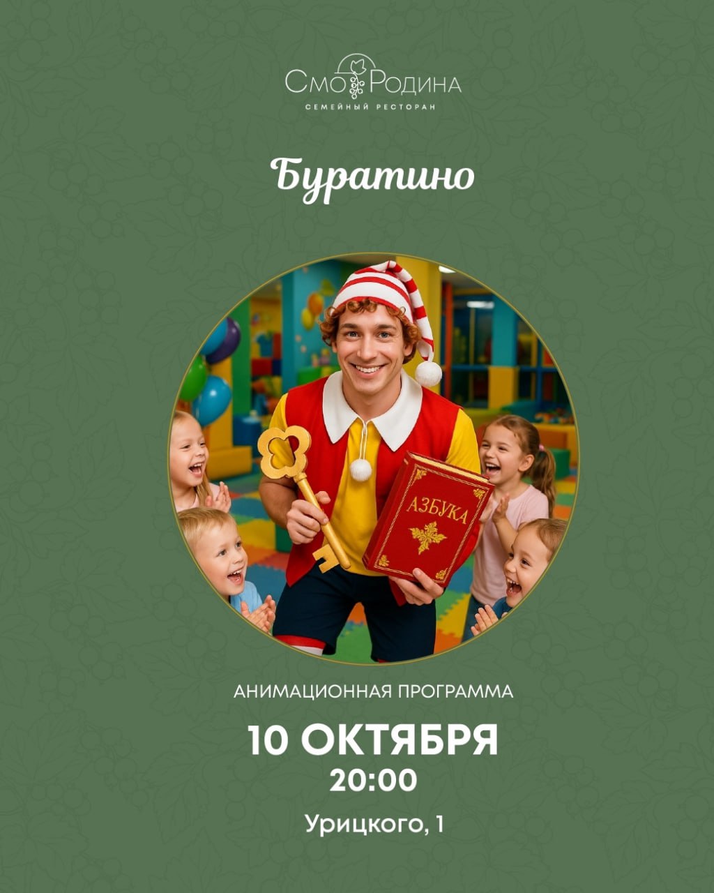 Анимационная программа «Буратино» 10 октября в 20:00 в ресторане «СмоРодина».