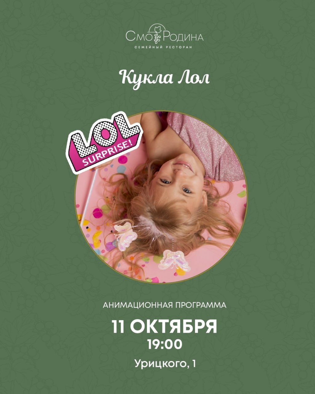 Анимационная программа «Кукла Лол» 11 октября в 19:00 в ресторане «СмоРодина».