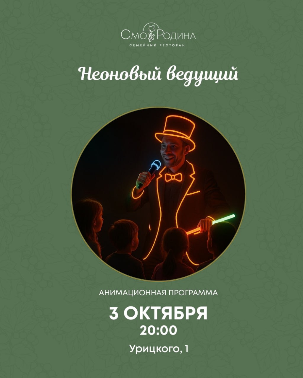 Анимационная программа «Неоновый ведущий» 3 октября в 20:00 в ресторане «СмоРодина».