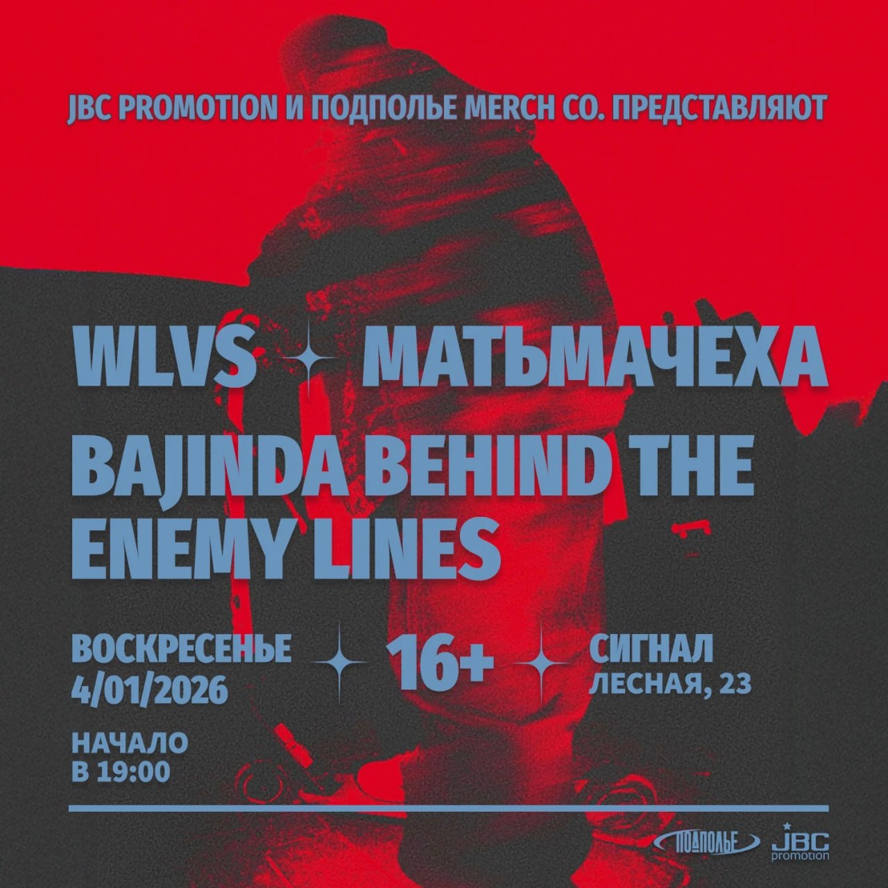 Большой праздничный концерт групп BAJINDA BEHIND THE ENEMY LINES, WLVS, МАТЬМАЧЕХА в ивент-холле «Сигнал».
