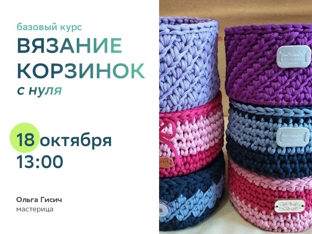 Цвет корзинки каждый участник выбирает индивидуально, по своему вкусу. На выбор будут представлены разнообразные расцветки пряжи.