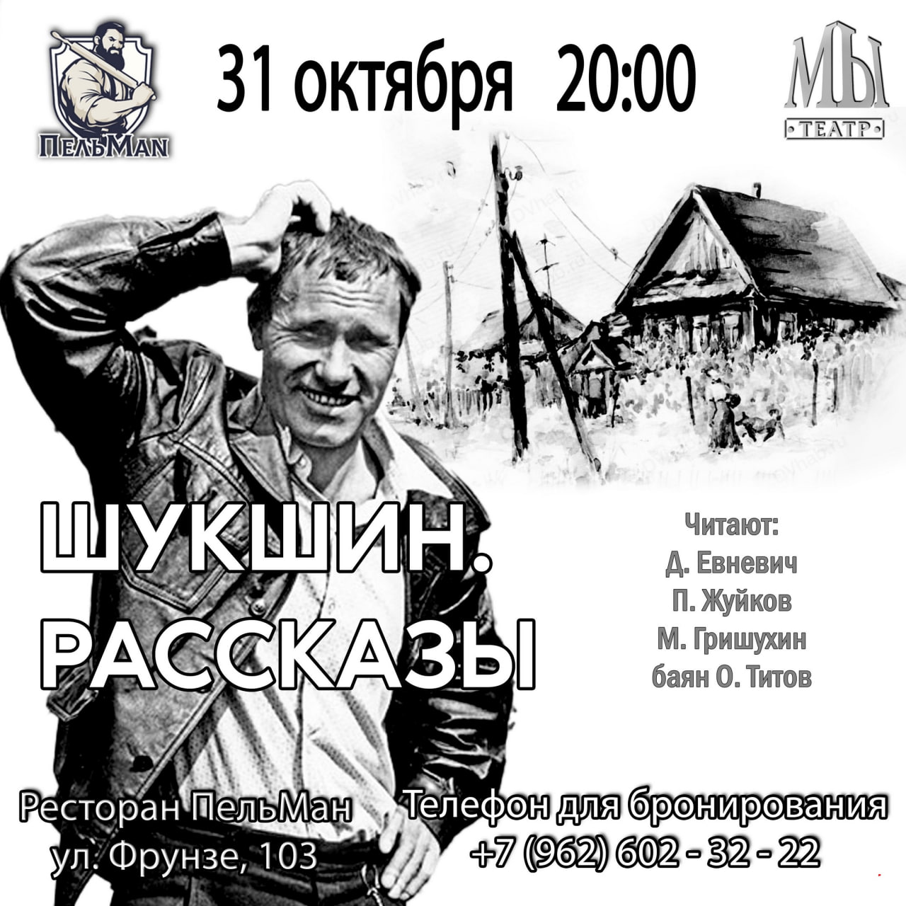 Приглашаем вас 31 октября в 20:00 на увлекательную читку произведений великого русского писателя и режиссера Василия Макаровича Шукшина, в которых переплетаются юмор и глубокие жизненные размышления.