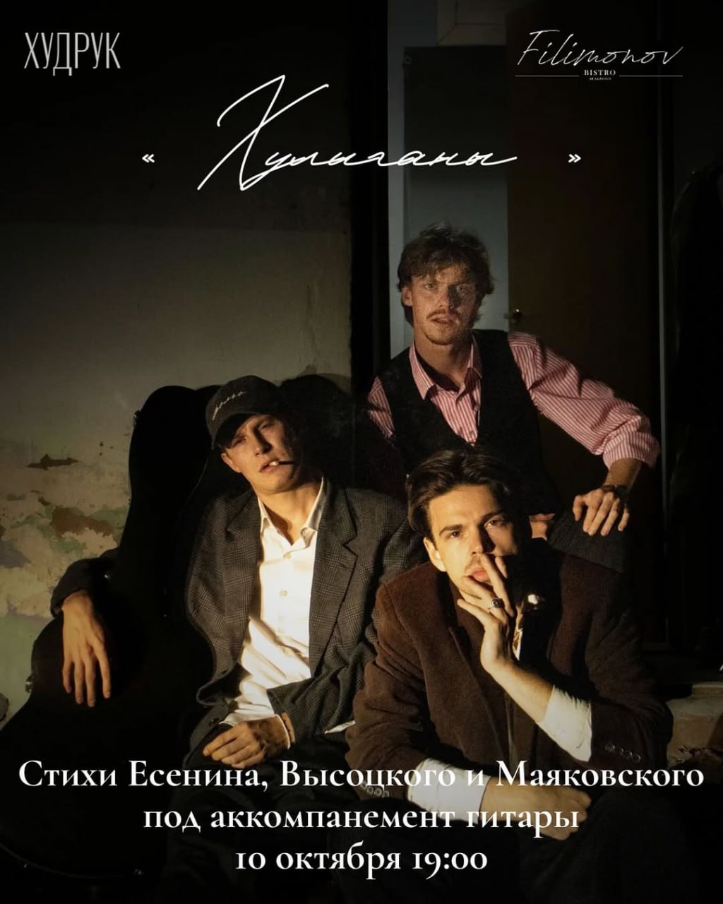 Актёры театра «Грань» Роман Пяткин и Василий Радченко станут проводниками в мир хулиганской поэзии, где страсть граничит с отчаянием, любовь — с ненавистью, а правда — с ложью.