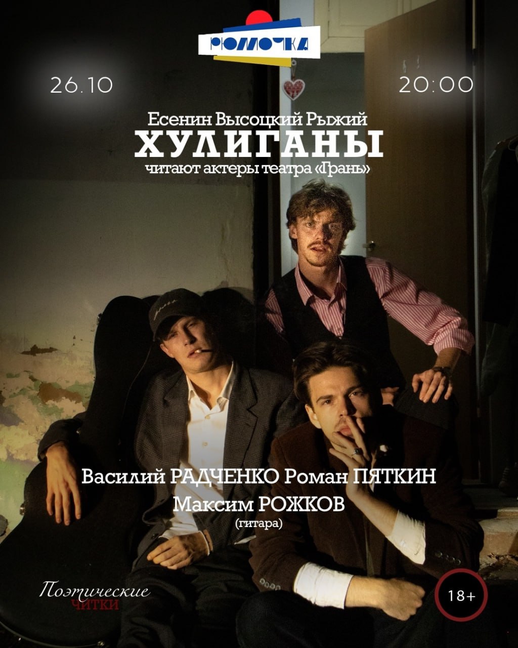 Стихи Есенина, Лермонтова, Высоцкого, Рыжего прозвучат искренне, с бунтарским духом и честностью. А гитара Максима Рожкова придаст каждому слову новое звучание.