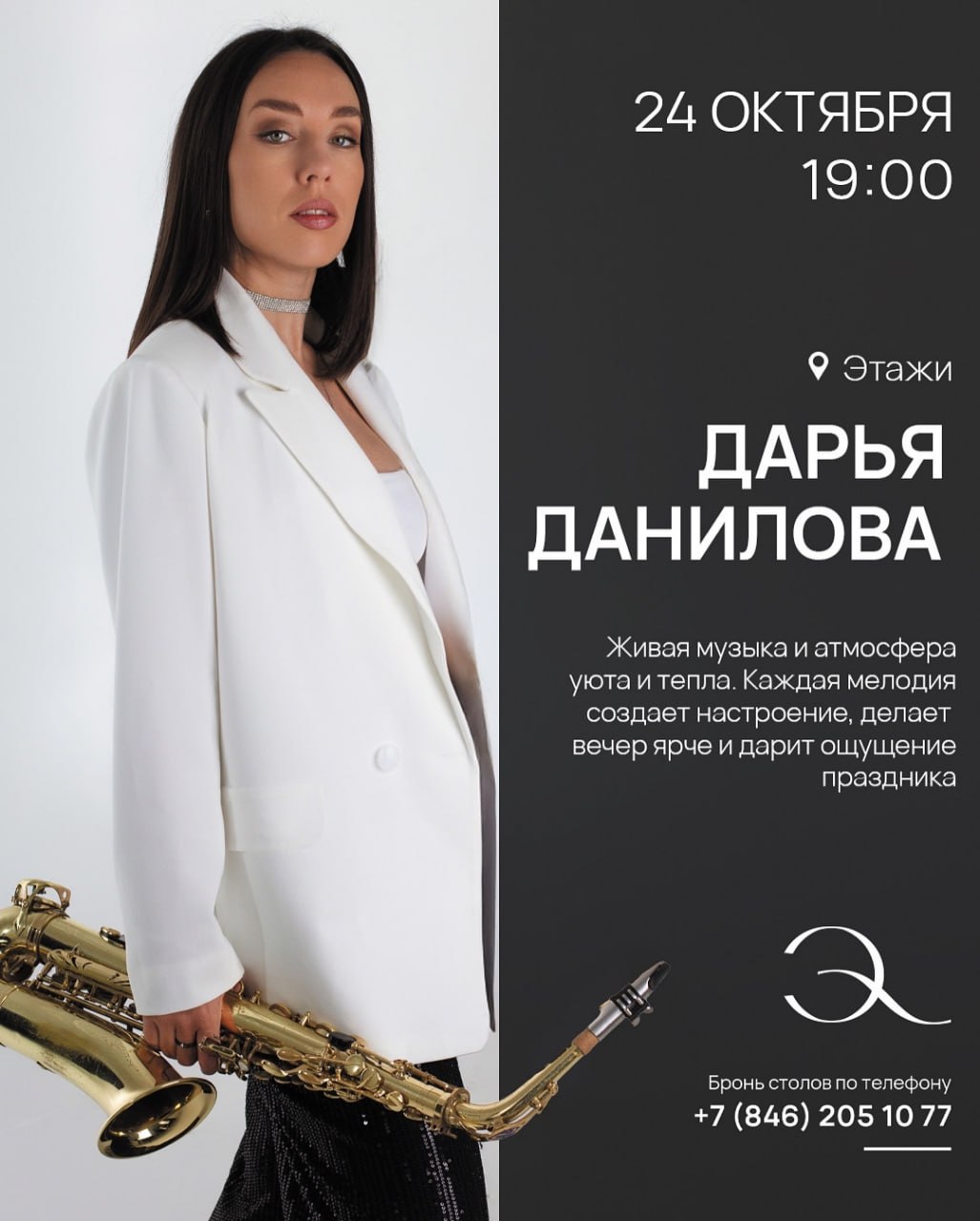 Окунитесь в атмосферу незабываемого вечера, где каждый момент наполнен чарующим звучанием саксофона: 10 октября в 19:00 мы приглашаем вас в незабываемое музыкальное путешествие.