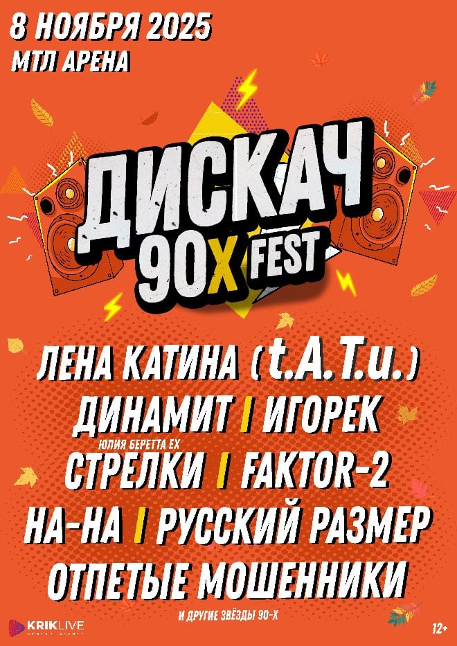 Оригинальные звёзды 90-х ждут тебя 8 ноября 2025г. на площадке МТЛ Арена, чтобы подарить атмосферу взрывного драйва и ярких эмоций! Стань частью команды и погрузись в мир нового масштабного ностальгического шоу вместе с нами!