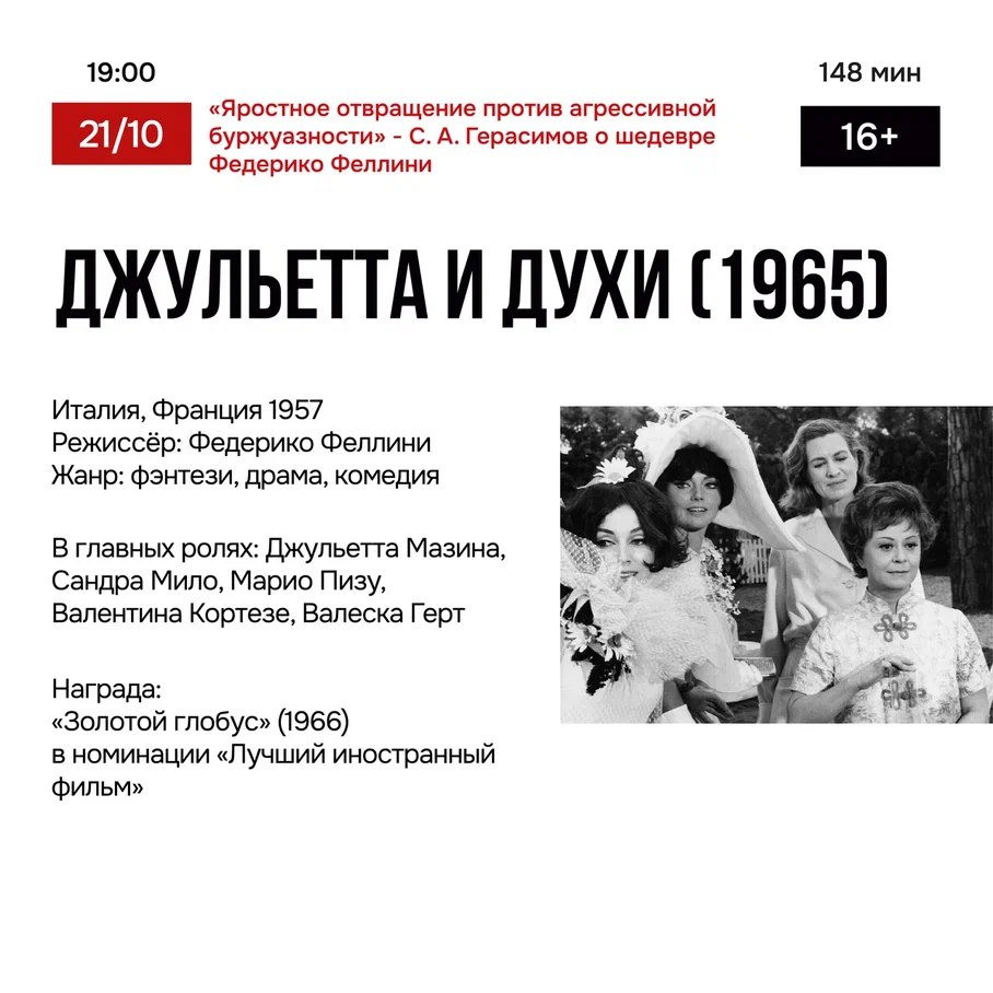 Захватывающий сюжет семейной драмы, приправленный элементами мистики и сюрреализма. Джульетта пытается спасти свою любовь от увлечения мужа красивой моделью, погружаясь в мир видений и духов. Этот уникальный фильм дарит зрителю мощнейший заряд эмоций и размышлений о человеческой природе.