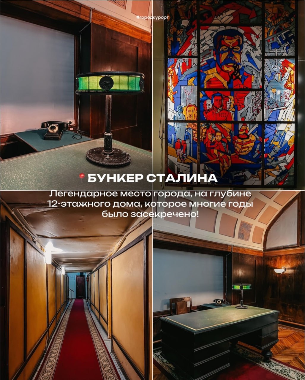 «Город-курорт» приглашает вас на экскурсию в потрясающий воображение бункер Сталина, находящийся под землей на глубине 12-этажного дома. Этот объект был засекречен долгие годы, и до сих пор далеко не каждый житель нашего города знает, где он находится и бывал в нем.