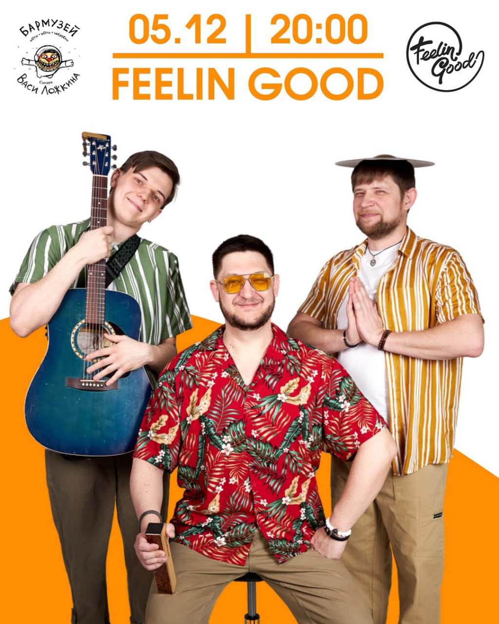 Feelin Good — трио музыкантов, вооруженных лишь акустической гитарой, кахоном, перкуссией, бешеной харизмой и, конечно же, своими неподражаемыми голосами!