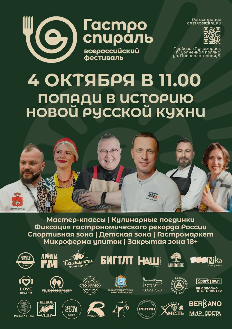 Уже в эту субботу, 4 октября, пройдет масштабное открытие фестиваля «Гастроспираль»! Гостей ждут гастромаркет, миниферма улиток, зрелищная гонка улиток, детская зона и спортивная площадка.