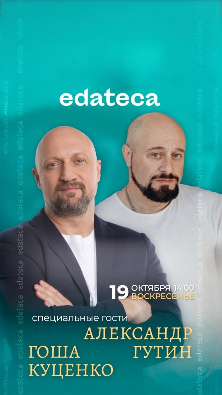 В воскресенье, 19 октября, в 14:00 в ресторане Edateca пройдет встреча с Гошей Куценко и Александром Гутиным.