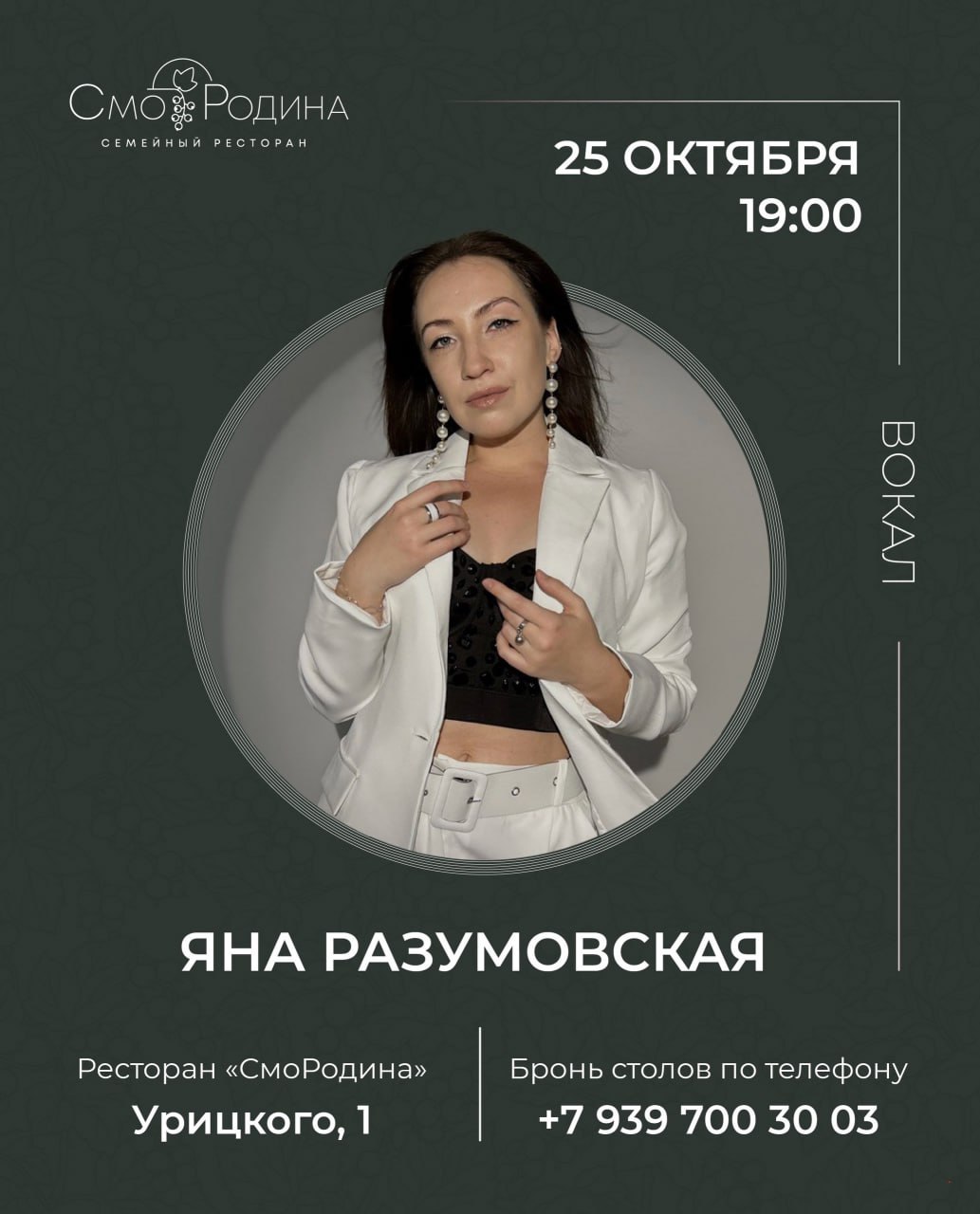 Яна Разумовская 25 октября в 19:00 в ресторане «СмоРодина».