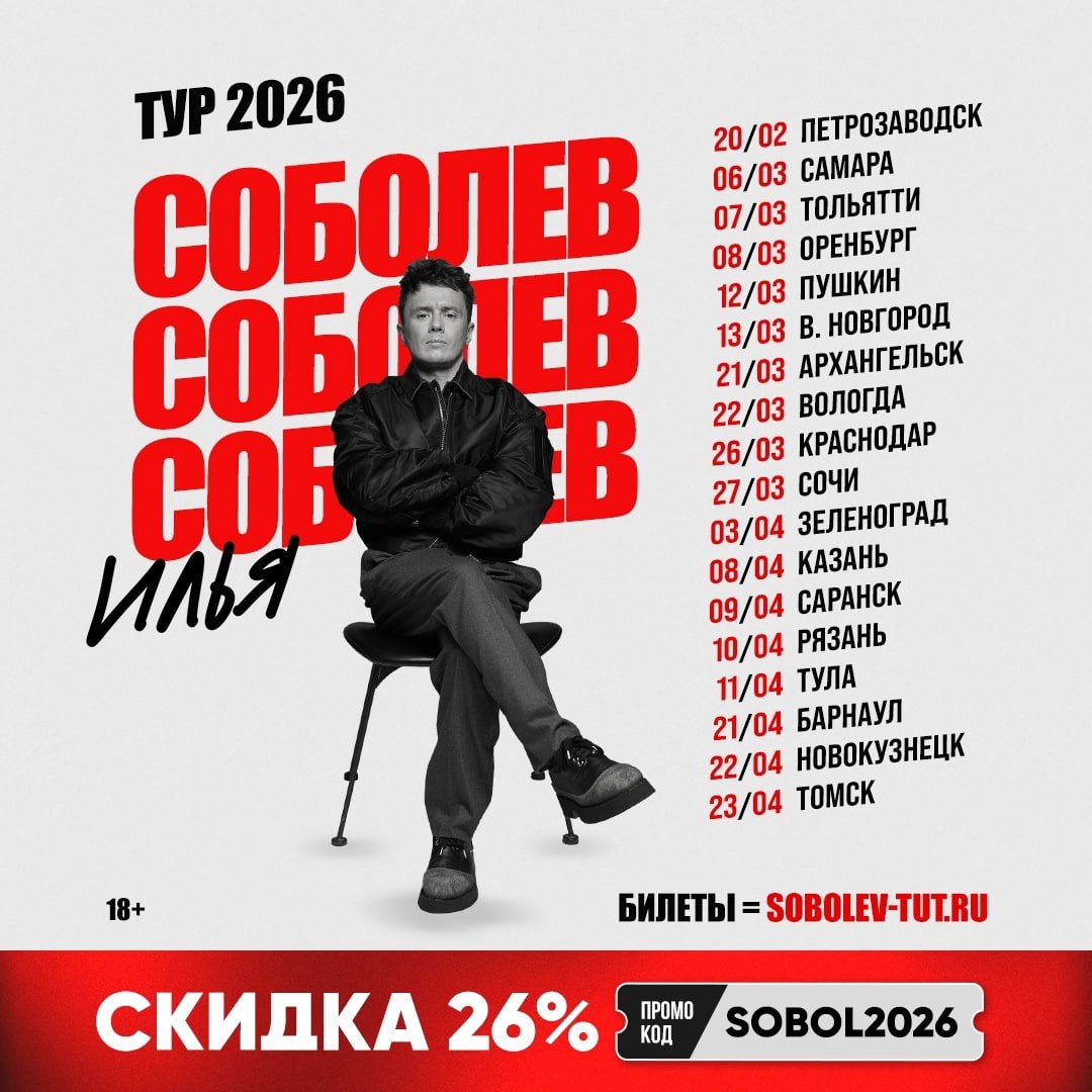Илья Соболев, один из самых популярных и оригинальных комиков, актёр и ведущий множества популярных проектов, приглашает вас на свой новый стендап-концерт!
