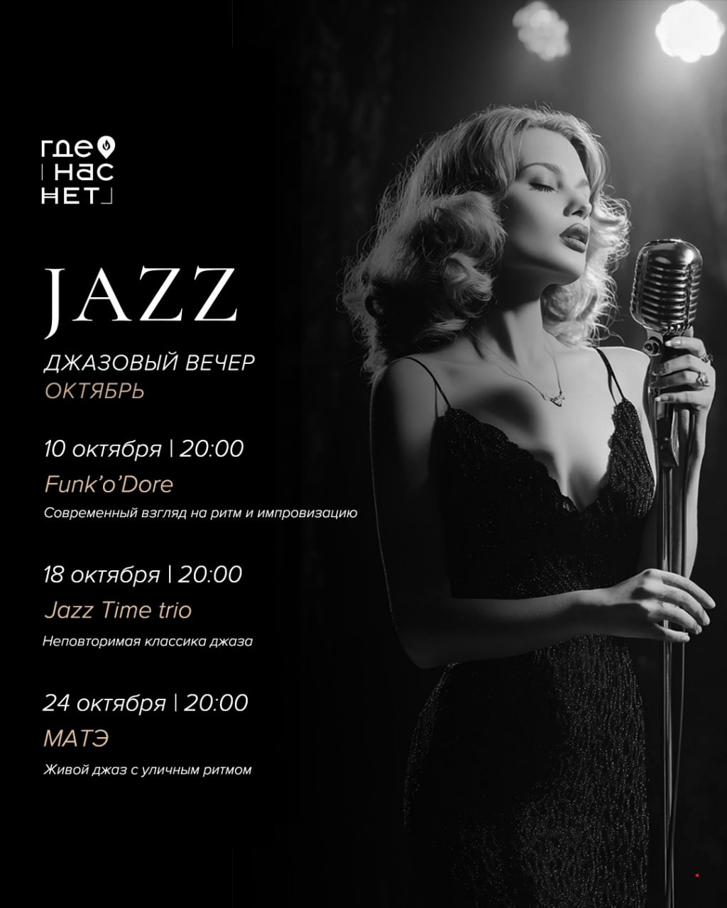 Джазовые вечера в ресторане «Где нас нет». Завораживающие мелодии в сопровождении гастрономии мира от шефов — атмосфера, в которую хочется погрузиться без остатка.