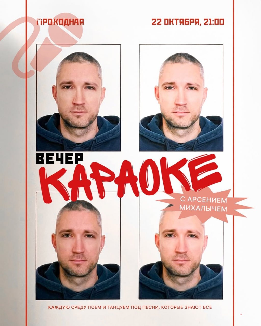 Ведущий вечера — Арсений Михалыч, заслуженный артист бара Проходная, КМС по караоке и просто улыбчивый молодой человек!