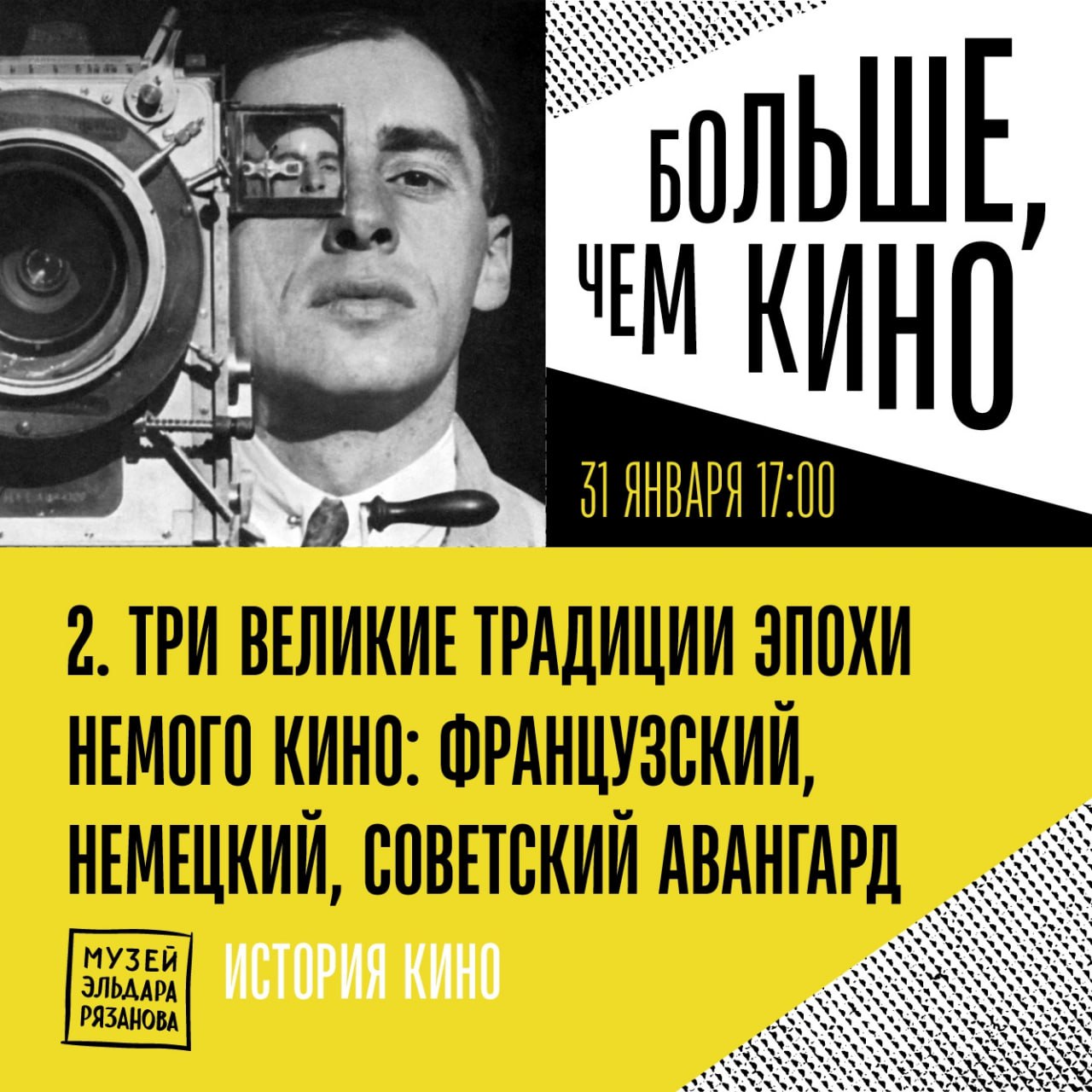 Киношкола «Больше, чем кино: форма и история». Занятие 2 «Три великие традиции эпохи немого кино: французский, немецкий, советский авангард» 31 января в 17:00 в музее Эльдара Рязанова. 16+