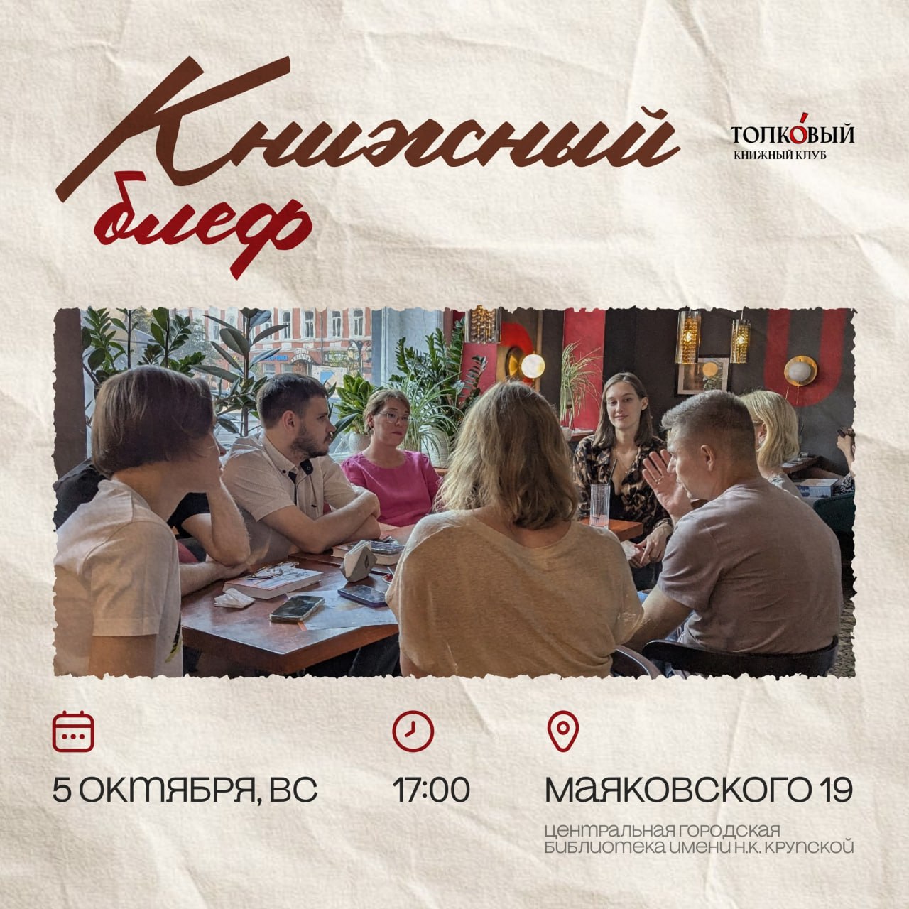 На первой встрече познакомимся с форматами работы клуба и его достижениями, узнаем о планах и мероприятиях, сыграем в литературную игру «Книжный блеф».