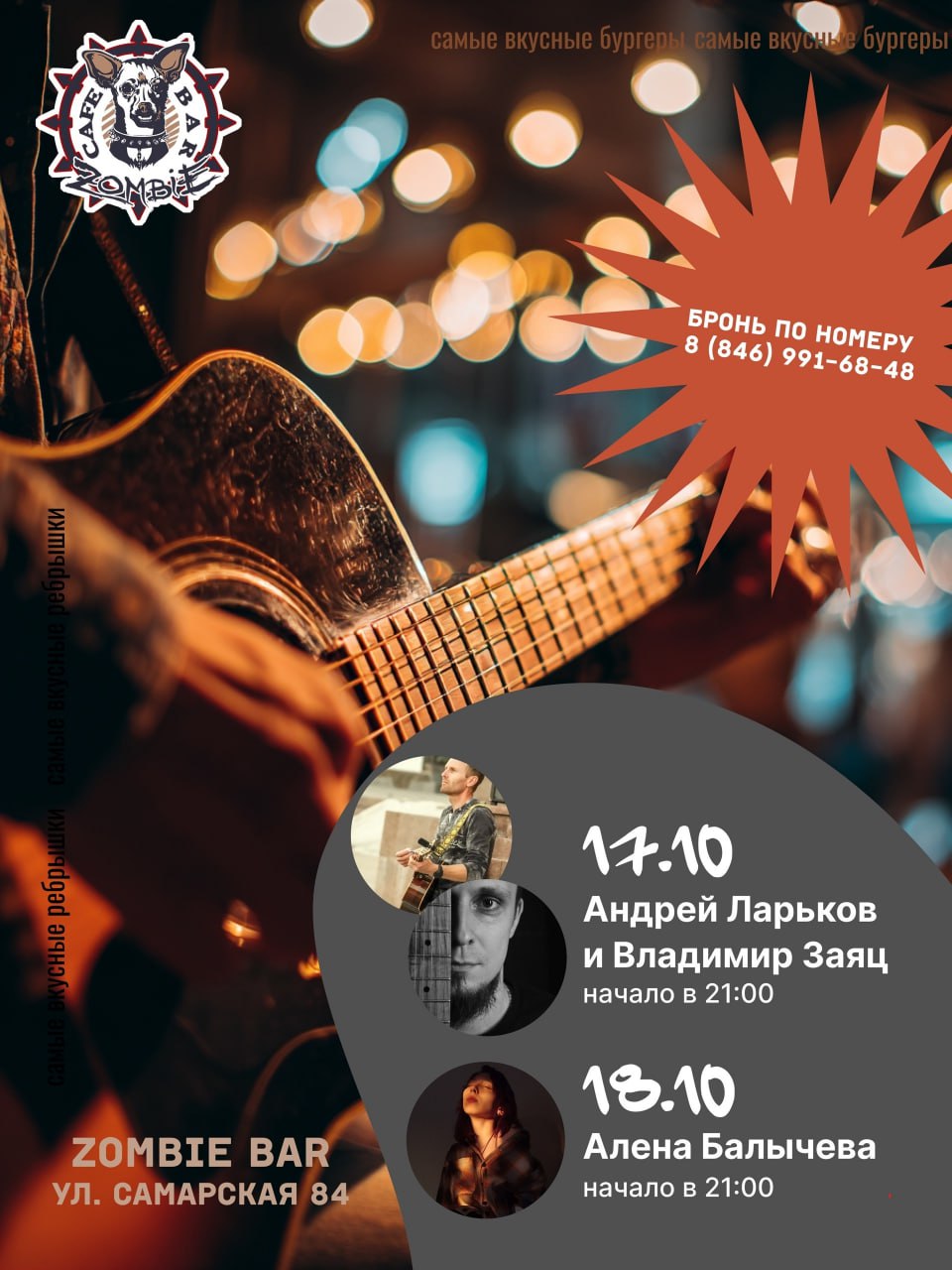 Пятница, 17 октября — врываются Андрей Ларьков и Владимир Заяц с мощной акустикой и душевными вибрациями.