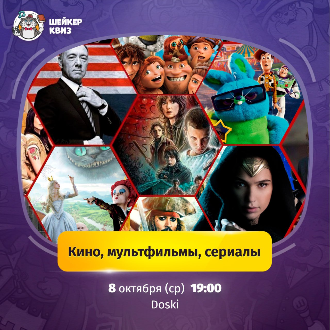 Любители кино, мультфильмов и сериалов, ваш час пробил! Мы объединили три отрасли киноиндустрии в одну игру. Вас ждут вопросы на эрудицию, смекалку и логику по различным фильмам, мультфильмам и сериалам. Культовые кадры, известные видеофрагменты, аудиодиалоги, персонажи, актёры и актрисы, режиссёры, альтернативные постеры и др. Большая часть вопросов по иностранным сюжетам.