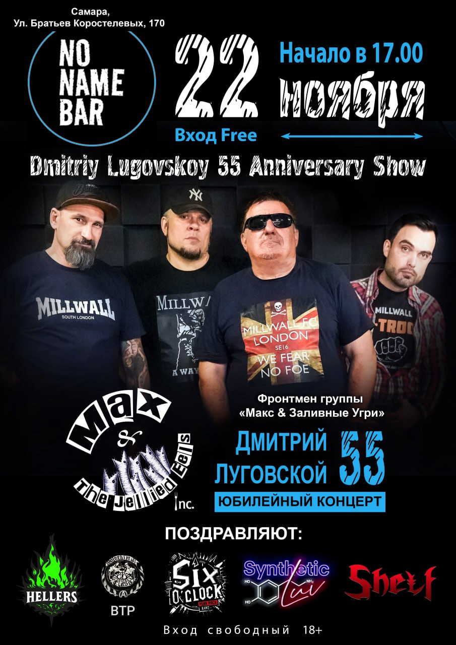 22 ноября в 17.30 в «Баре Без Названия» выступит группа с ироничным названием «Макс и Заливные Угри», играющая честный олд-скульный панк/хард рок, чьи диски продаются в Лондоне, на стадионе футбольного клуба «Миллуолл», и в чьем составе играют настоящие мастодонты Самарского рок-движения.