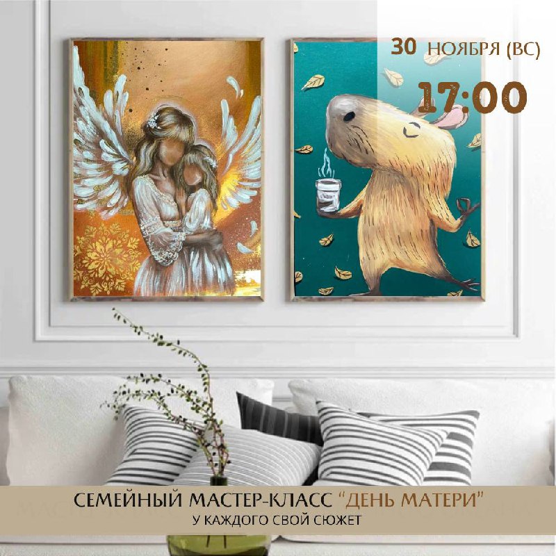 Семейный мастер-класс «Мама+ребенок» ко Дню матери по живописи от студии творчества АртЛаб Самара в очень уютной атмосфере. Пишем акрилом на холсте. У каждого свой сюжет.