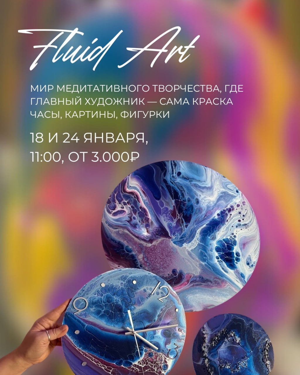 Создайте абстрактную картину или часы в технике Fluid Art. Стоимость от 3000 рублей.