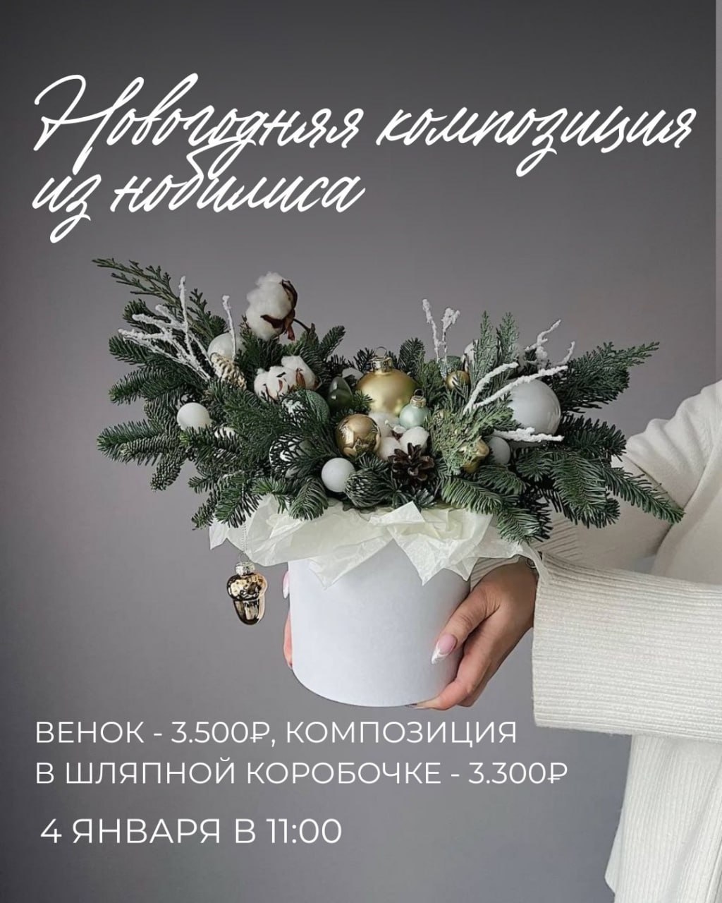 Венок 3500 рублей, в шляпной коробочке 3300 рублей.
