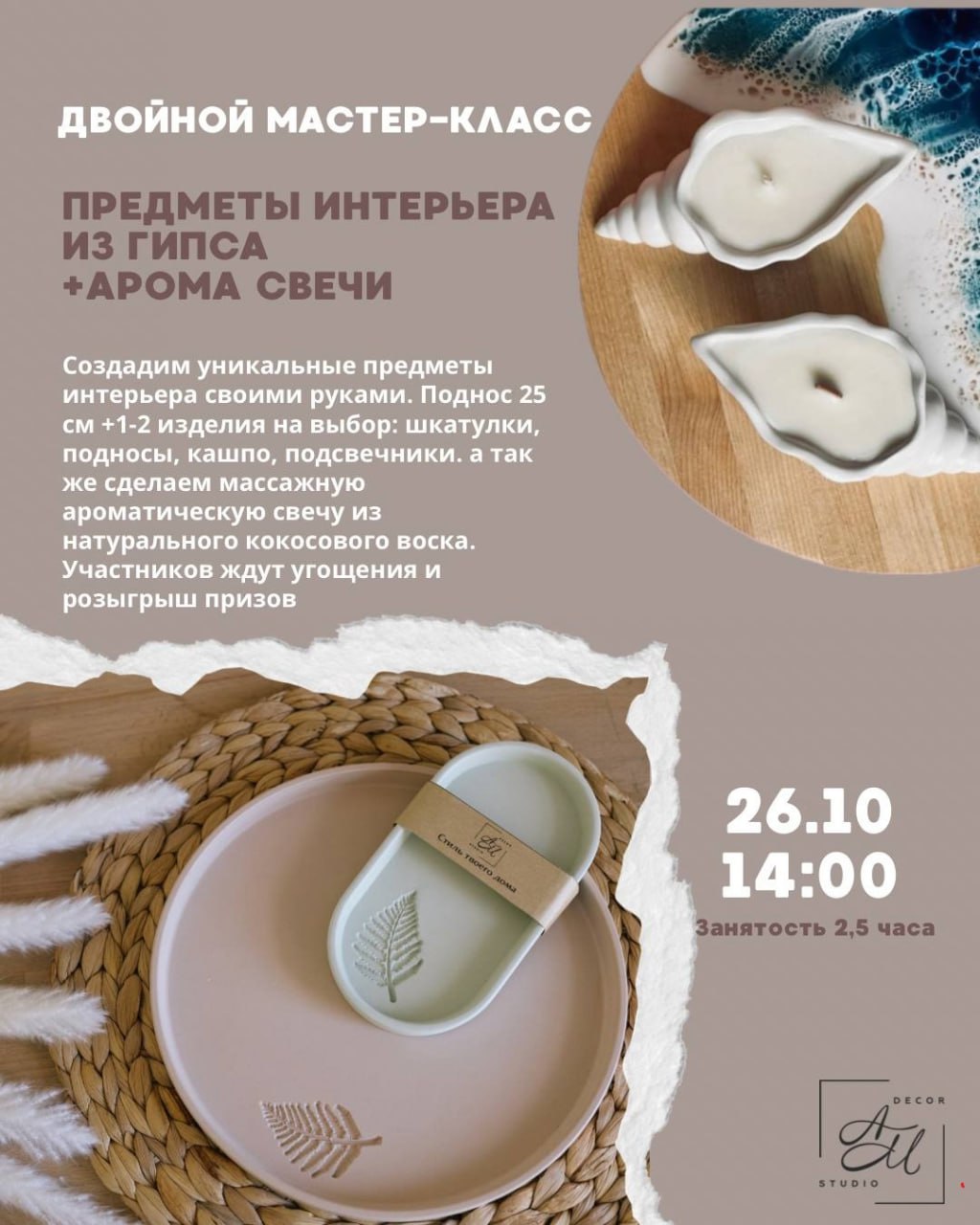 Создадим подносы 25 см+1 изделие на выбор: кашпо, вазы, шкатулки, подсвечники. При желании задекорируем в современных техниках. А так же создадим ароматическую свечу из натурального воска.