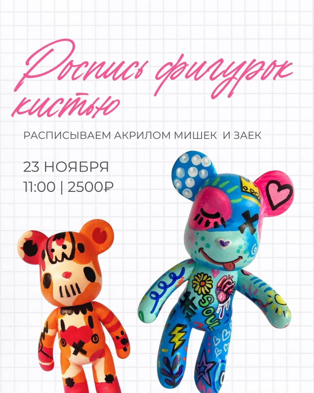 Расписываем акрилом мишек и заек. Стоимость 2500 рублей.
