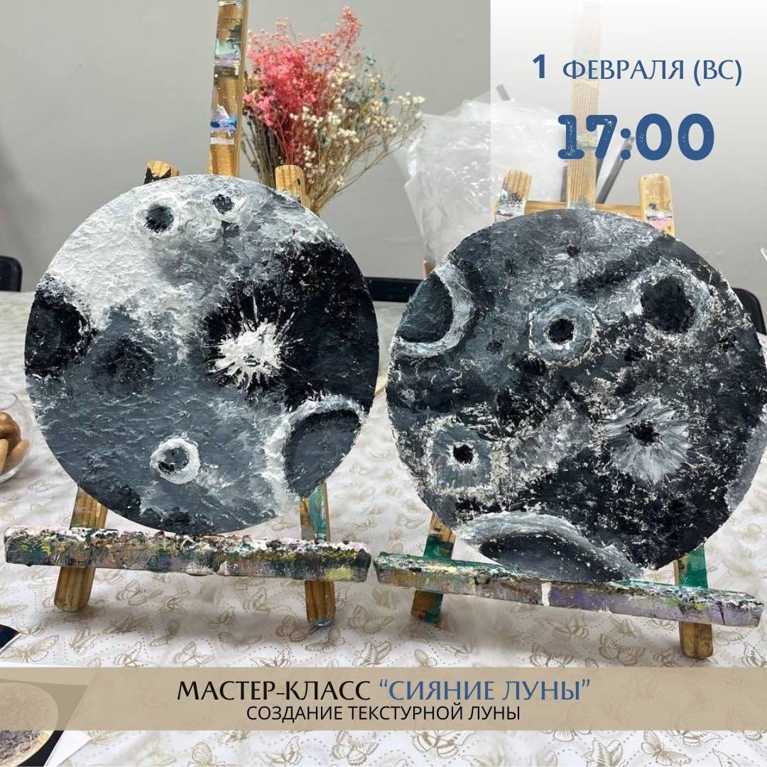 Космический мастер-класс создание текстурной луны «Сияние луны» с подсветкой или без нее. Стоимость от 1500₽ (зависит от выбранного размера борда).