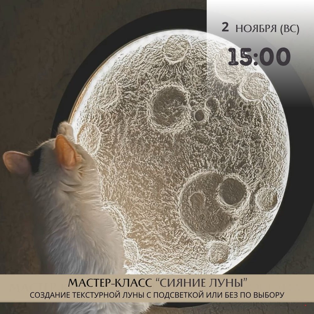 Космический мастер-класс создание текстурной луны «Сияние луны» с подсветкой или без нее. Стоимость от 1500 рублей.