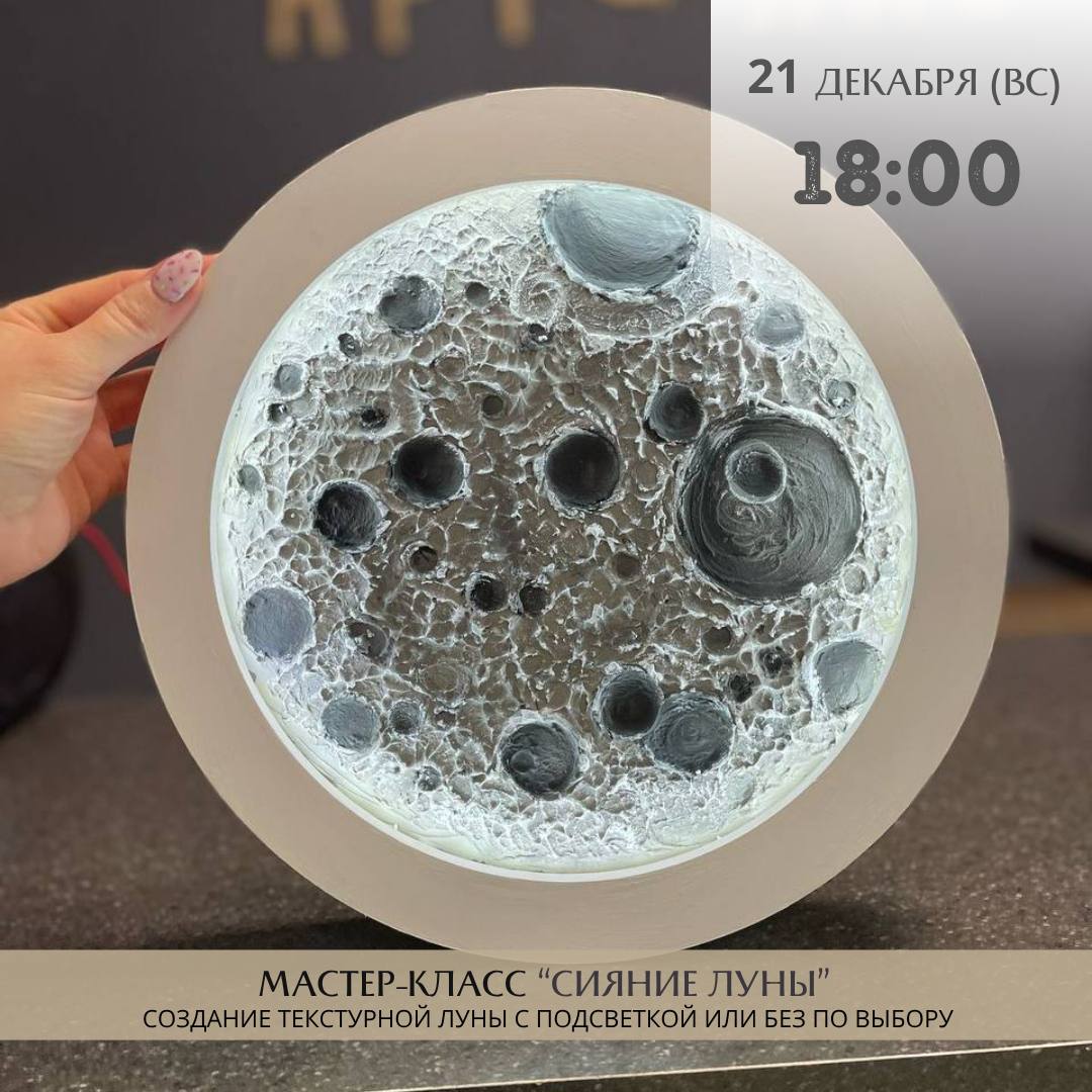 Космический мастер-класс создание текстурной луны «Сияние луны» с подсветкой или без нее. Стоимость от 1500 рублей.