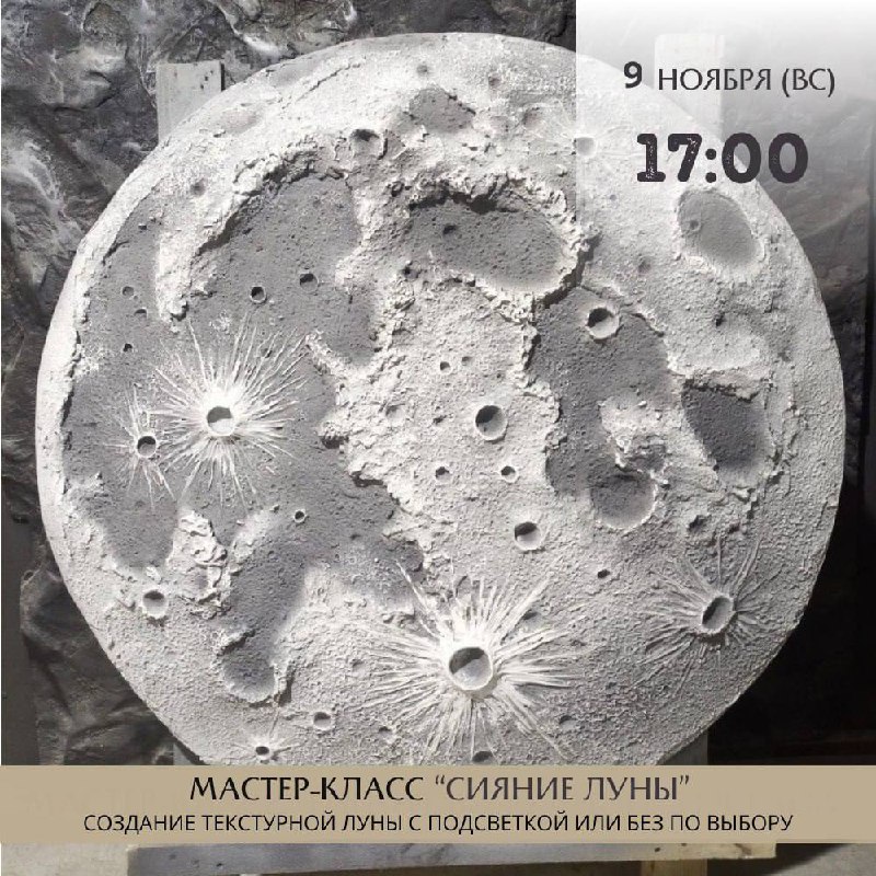 Космический мастер-класс создание текстурной луны «Сияние луны» с подсветкой или без нее. Стоимость от 1500 рублей.