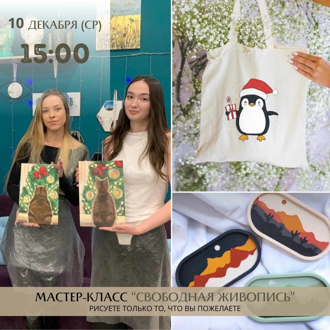 День свободной живописи, где вы сможете нарисовать, что вашей творческой душе угодно. Холст, акрил, 1300₽.