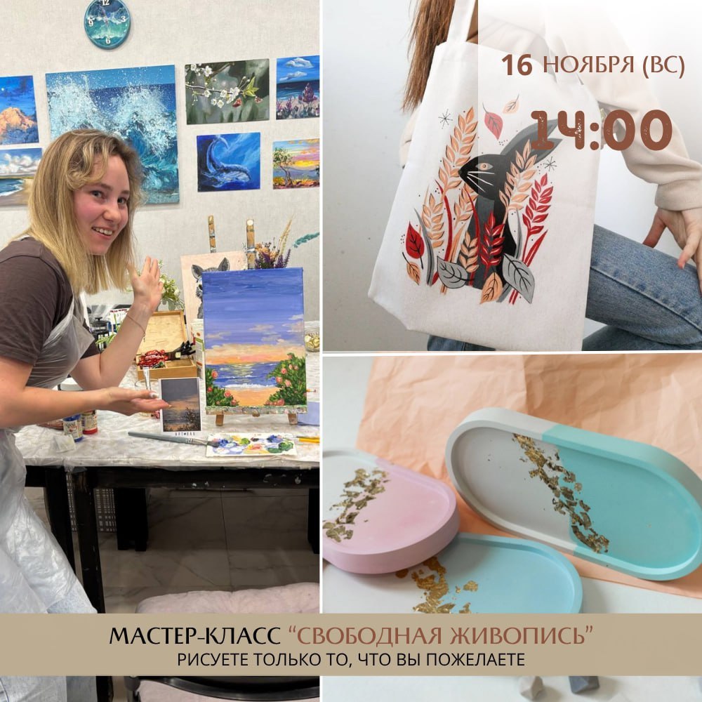 День свободной живописи, где вы сможете нарисовать, что вашей творческой душе угодно. Холст, акрил, 1300₽.