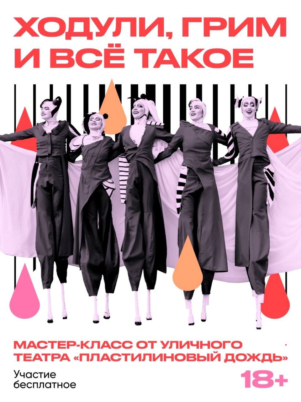 Независимый уличный театр «Пластилиновый дождь» представляет мастер-класс по погружению в профессию «Ходули, грим и всё такое».