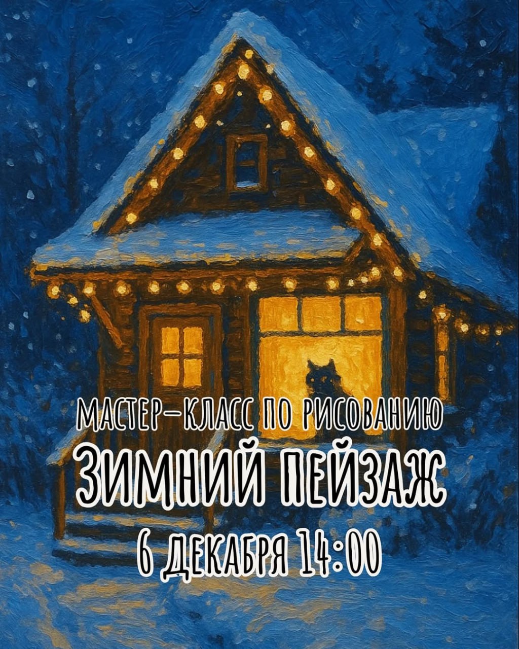 На мастер-классе с Алисой Шарипяновой мы создадим атмосферный зимний пейзаж — тот самый домик, где живёт уют.