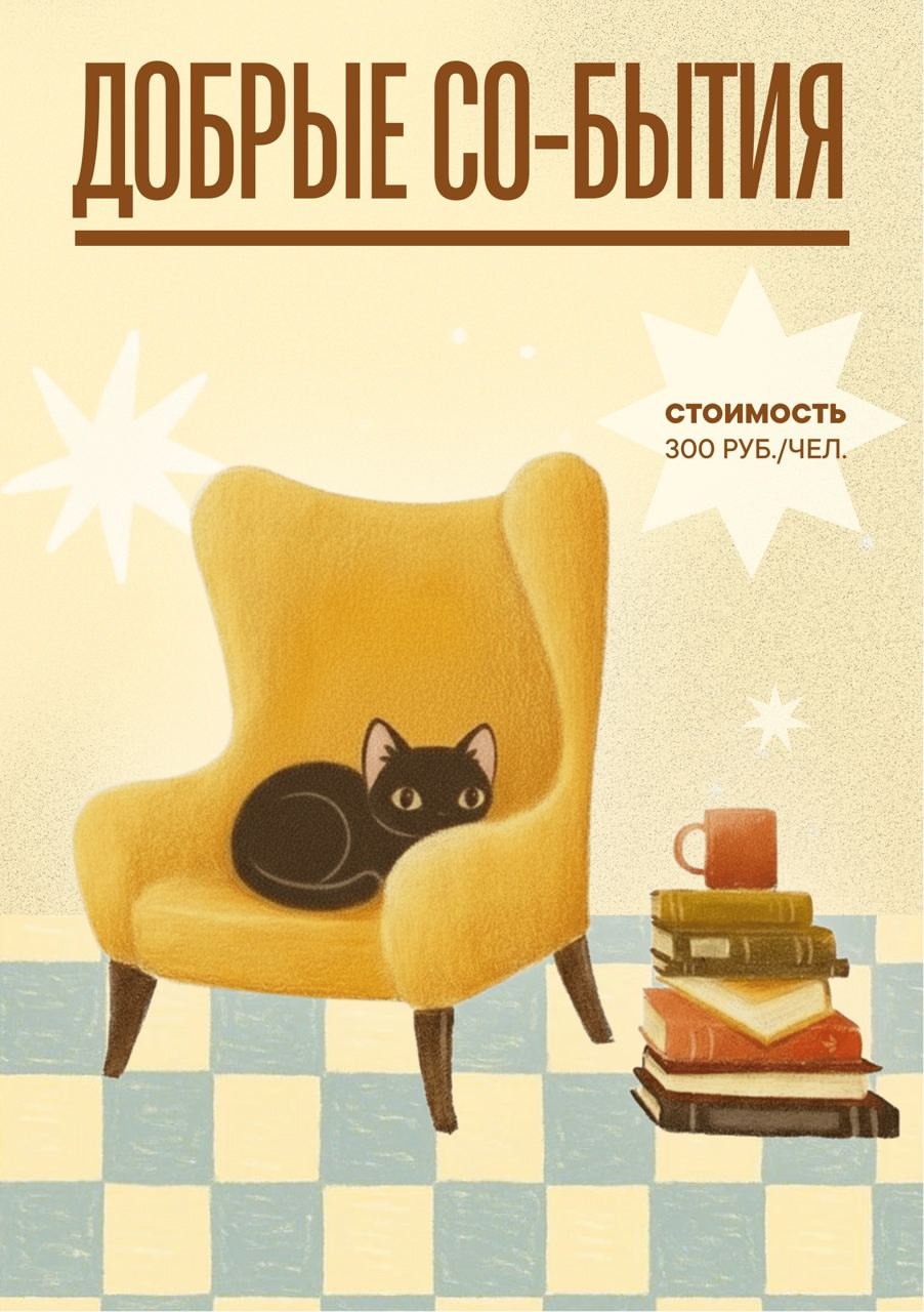 И по традиции — душевное чаепитие! Завершим вечер в уютной атмосфере пространства «Добрые Со-бытия» за чашкой горячего чая и приятными разговорами.