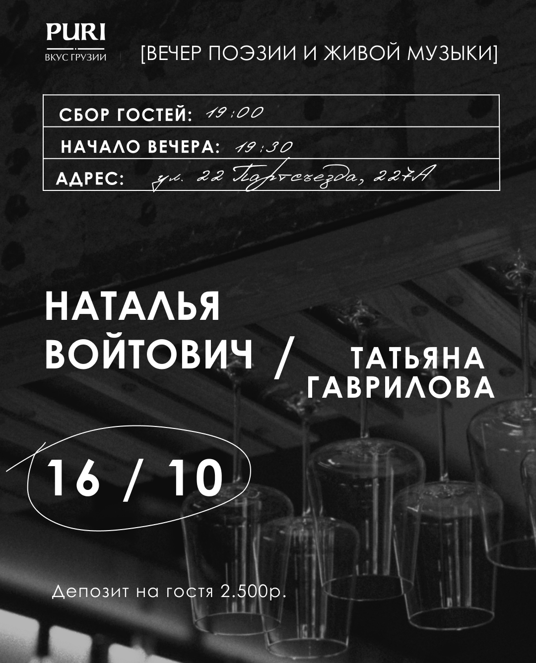 Приглашаем вас на вечер поэзии и живой музыки в бистро PURI