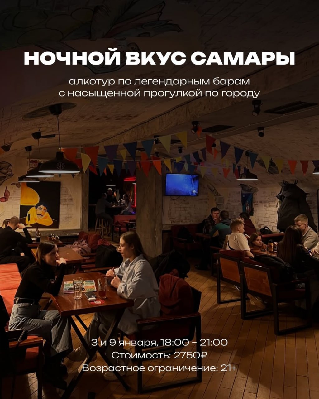 Новая версия барного тура по Самаре — это атмосферное путешествие по легендарным местам города. Теперь в программе не только дегустации, а насыщенная пешеходная прогулка по вечернему центру с интересными рассказами о барной культуре и людях, стоящих за этими заведениями.