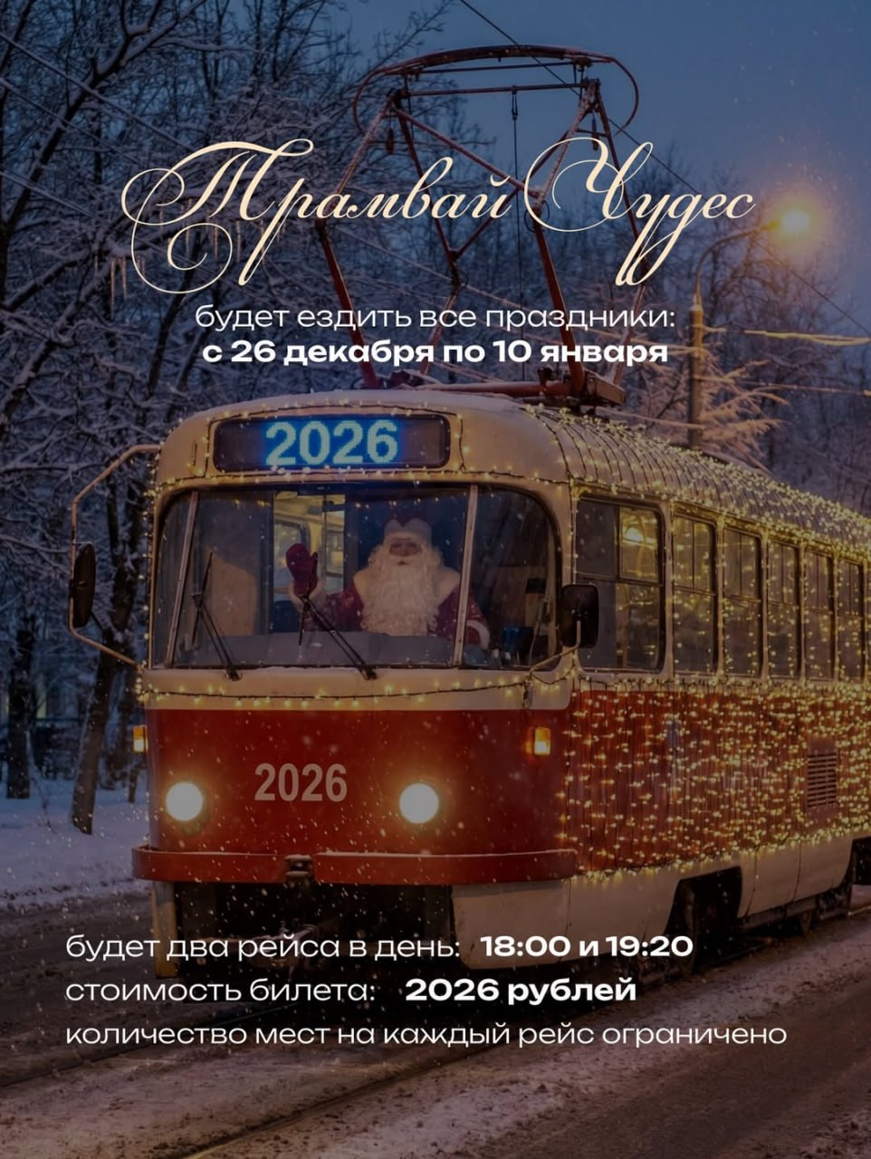 Приглашаем вас в уникальное новогоднее путешествие по Самаре «Трамвай Чудес», в котором случаются чудеса, когда их никто не ждёт — прямо как в добром и всеми любимом фильме «Ёлки»!