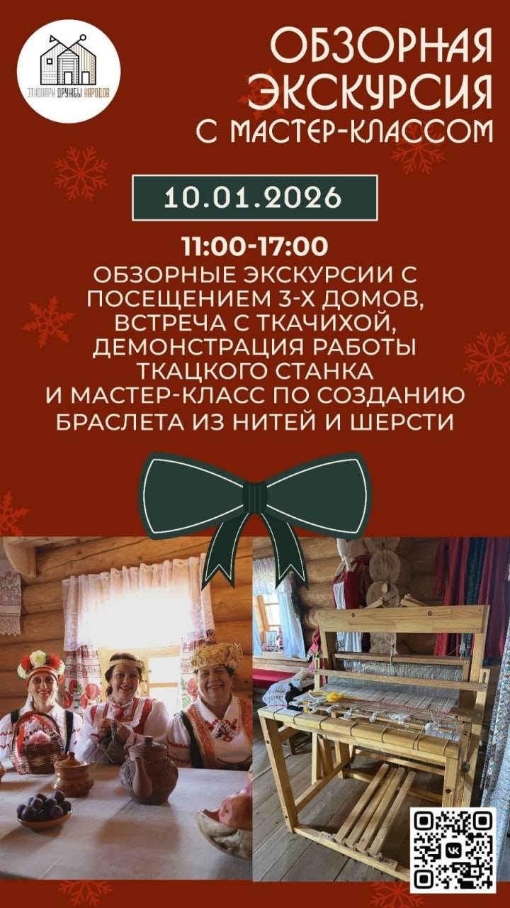 Гости Этнопарка встретятся с ткачихой и смогут поучаствовать в мастер-классе по созданию браслета из нитей и шерсти.