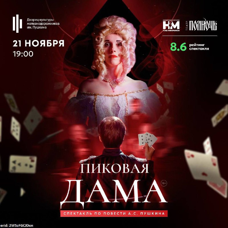 21 ноября погружаем в мистический Петербург: туман, мерцающие огни и шепот карт создадут атмосферу безумия и риска. Всего за 90 минут вы станете свидетелем того, как одна страшная тайна сводит с ума гениального игрока.