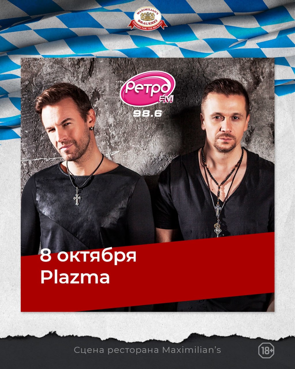 Plazma 8 октября в 20:00 в ресторане «Максимилианс». 18+