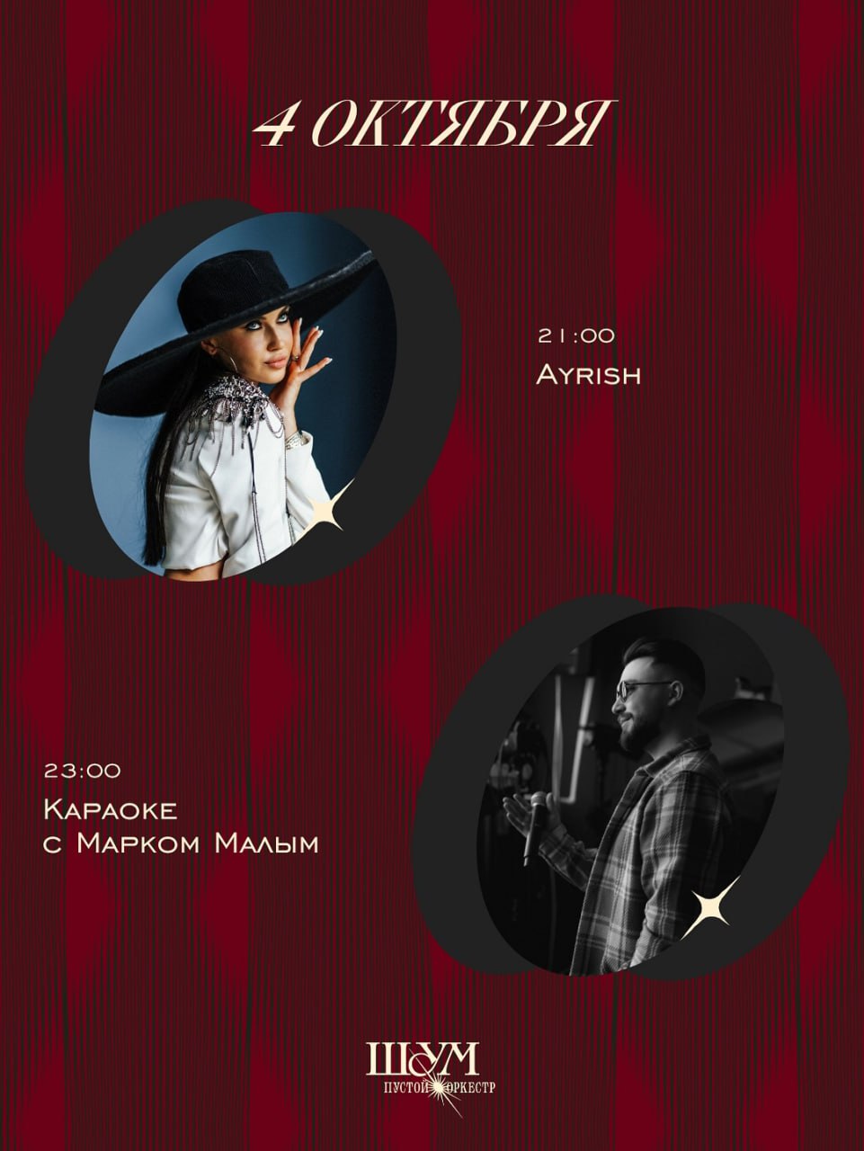 23:00 — Караоке с Марком Малым.