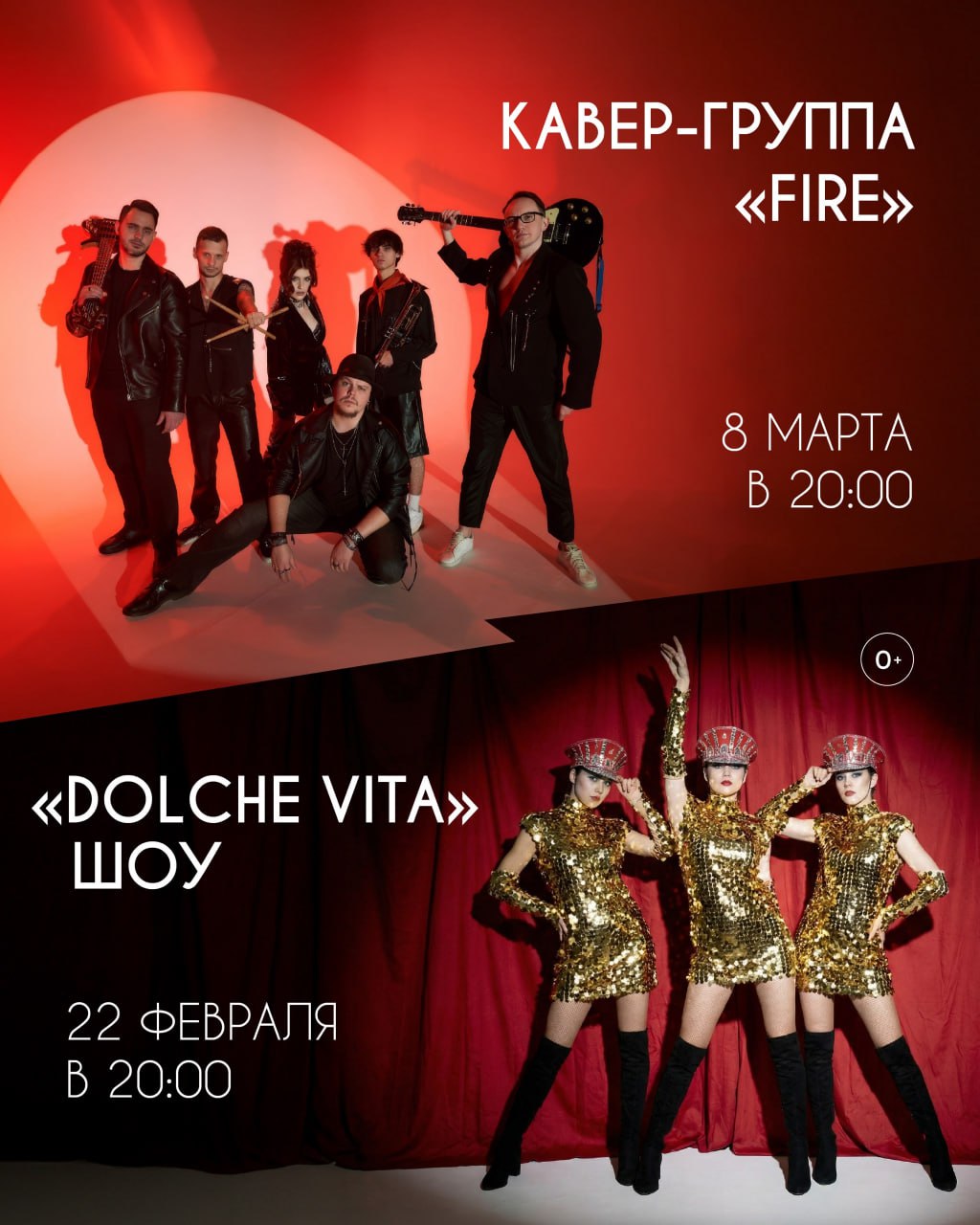 На сцене — блистательное шоу «DOLCHE VITA»: исключительно женский состав, живые голоса, пластика и харизма. После такого вечера мужчины уходят с лёгкой улыбкой и ощущением, что праздник действительно удался...