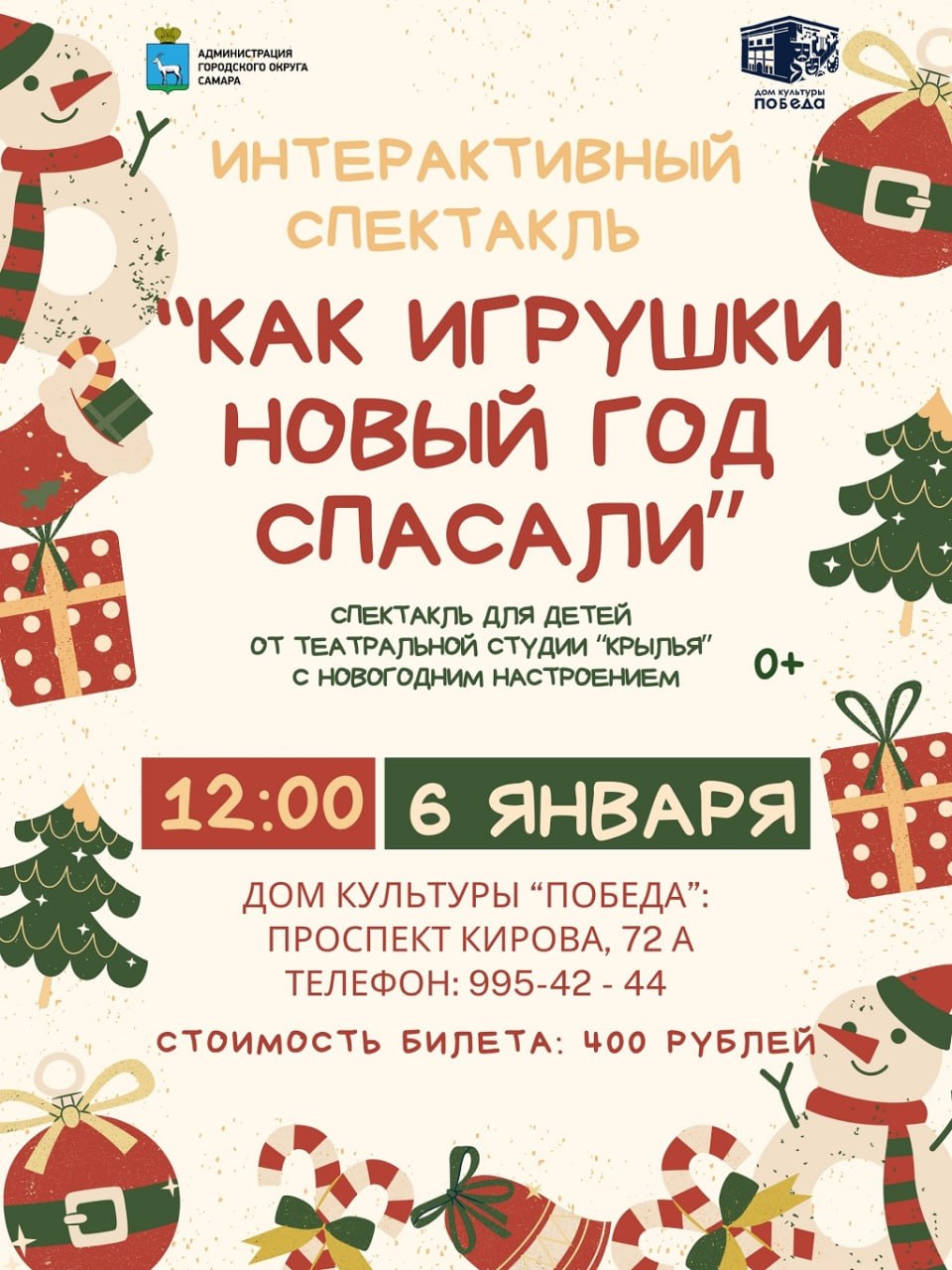 6 января в 12:00 приглашаем на Интерактивный спектакль "Как игрушки Новый год спасали" театра-студии «Крылья». 0+