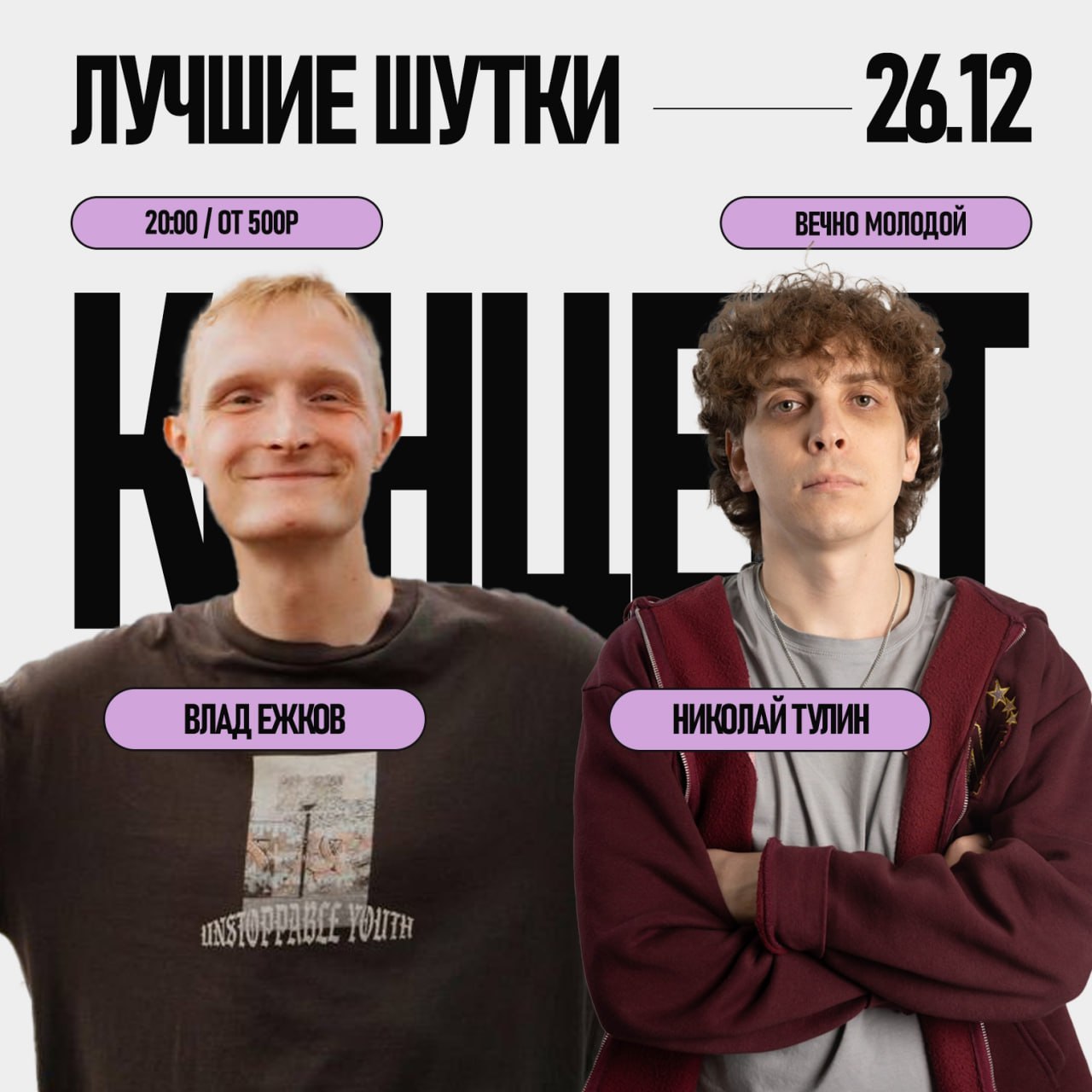 Стендап-концерт «Лучшие шутки» 26 декабря в 20:00 в «Вечно молодом». 18+