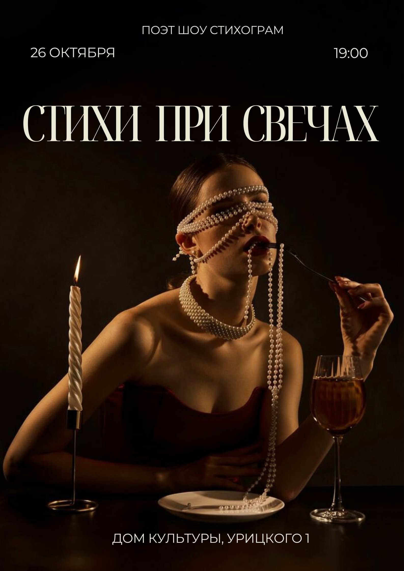 Октябрьский сумрак вечера, камерный зал, мягкий полумрак и десятки мерцающих свечей. Авторская музыка и стихи в исполнении самих поэтов и актёров. В завершении вечера — открытый микрофон, где каждый сможет выйти на сцену и поделиться творчеством.